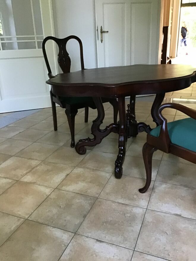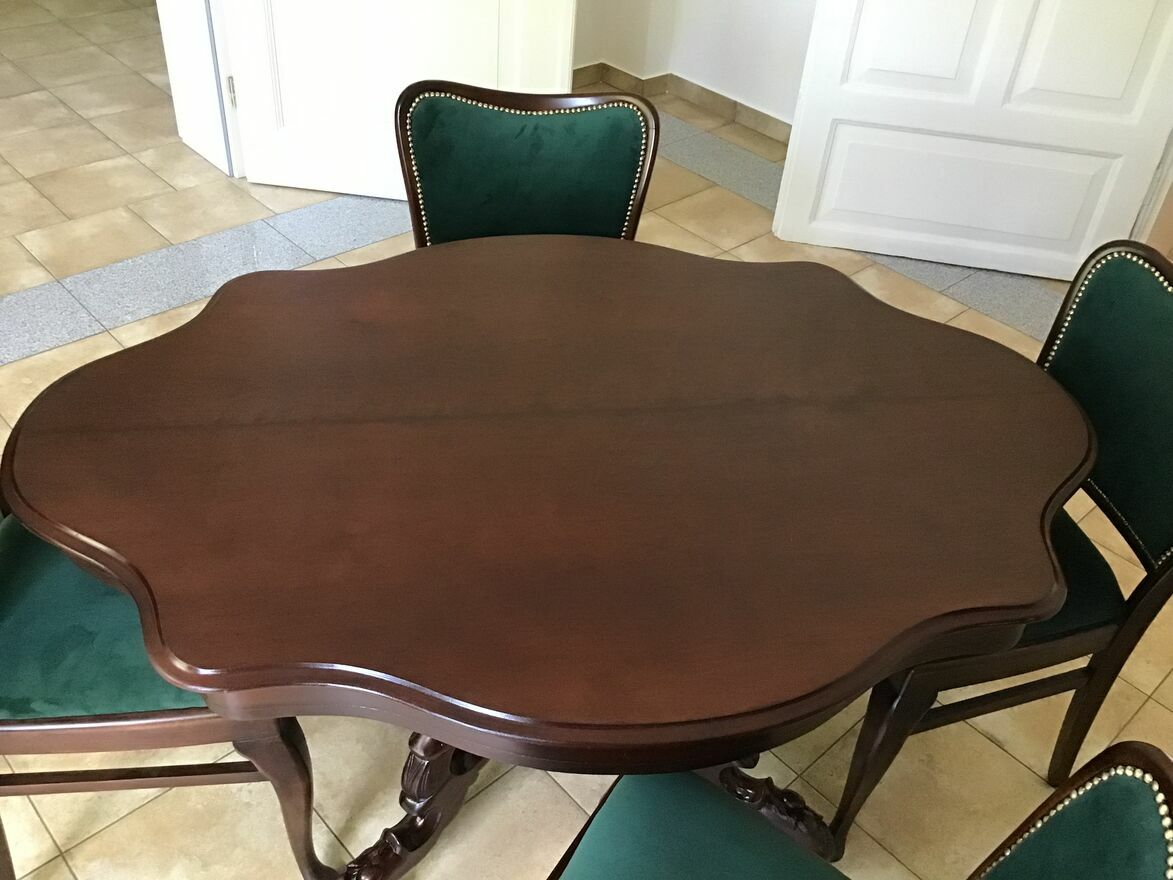 Piękny stół po całościowej renowacji, cały drewniany noga pięknie rzeźbiona, blat lite drewnoStół naprawdę prezentuje się pięknie , przyciąga oko